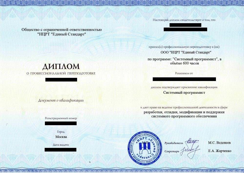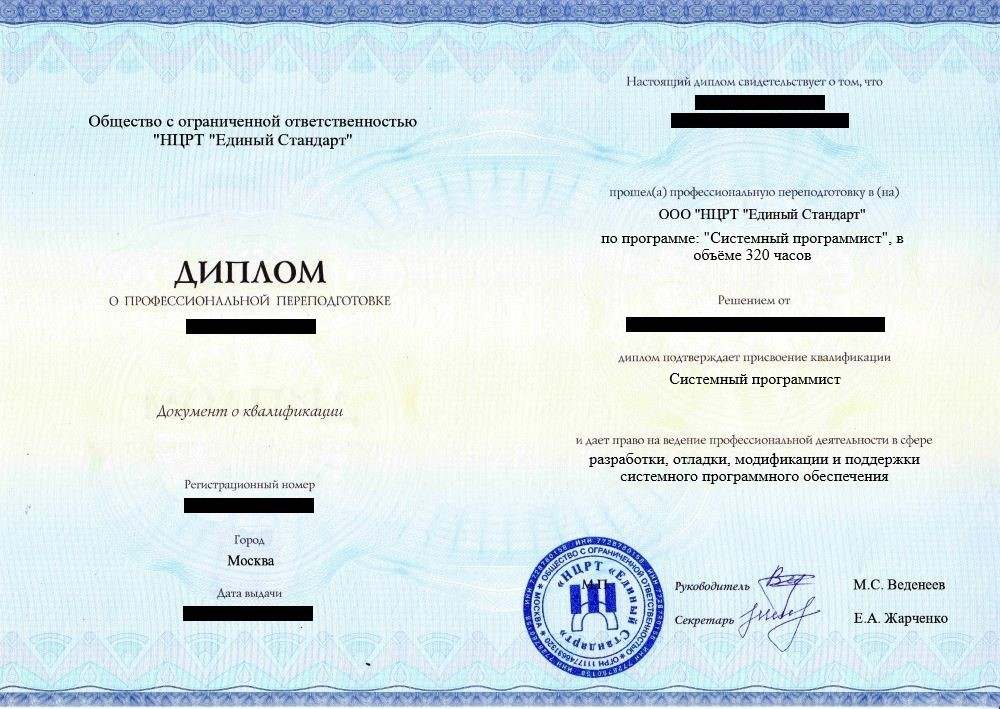 • «Системный программист» с правом ведения профессиональной деятельности в сфере разработки, отладки, модификации и поддержки системного программного обеспечения